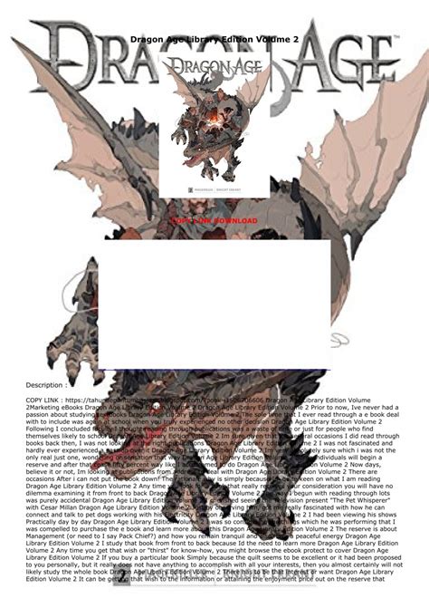 Read Dragon Age Library Edition Volume 2 PDF online is a convenient and frugal way to read Dragon Age Library Edition Volume 2 you love right from the comfort of your own home. Yes, there sites where you can get PDF "for free" but the ones listed below are clean from viruses and completely legal to use.